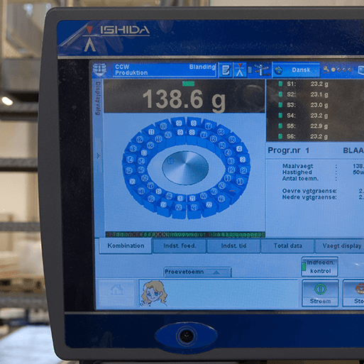 While the removal of product giveaway was vital, it was equally important that production line speeds were maintained. The Ishida is currently operating at 280 packs per minute, well within its speed potential and limited only by other parts of the packing line, something which Galle & Jessen intends to tackle in the coming months in order to reach the targeted line speed in excess of 400 packs per minute.