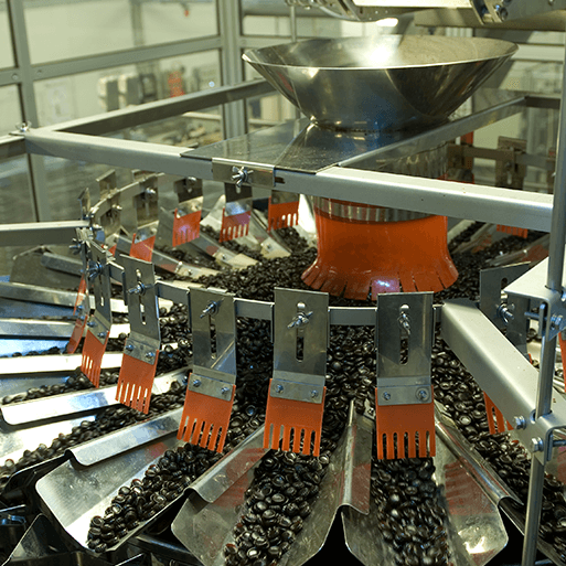 The Ishida’s flexible layout allows the 24 weighing heads to be segregated into six sections of four heads each. The weigher therefore despatches six weighments at a time into a specially developed funnel system that packs the pastilles into the cartons. In addition, the weigh hoppers feature special anti-stick C4 material to ensure that the pastilles do not clump together and thus flow freely and quickly through the machine.