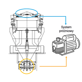 System ten, współdziałając ze stołem dyspersyjnym, skutecznie usuwa oddzielony cukier z głównej masy produktu.